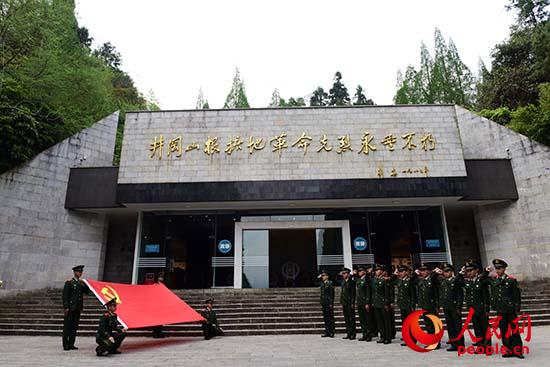 人民网井冈山5月10日电 (黄子娟、周勇敢)“弘扬井冈山精神,秉承先烈遗志,当好红色传人,永远做党和人民的忠诚卫士……”在井冈山革命烈士陵园,武警江西总队吉安支队井冈山中队官兵面对鲜红的党旗庄严宣誓,声声誓言响彻云霄。他们在这里深切缅怀革命先烈的丰功伟绩,接受精神洗礼。